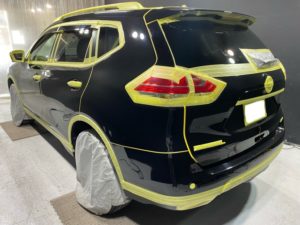 洗車、鉄粉除去を終え完全マスキングをした姿がコチラ!